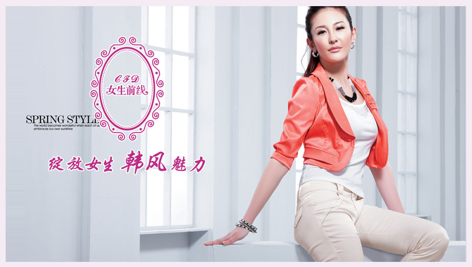 每个时尚丽人心中都萦绕着一个美丽的梦想:让时间永远定格在女生的时代,亦或重回女生的时代并永远驻足于此,徜徉在时尚与美丽之间,尽情的让生命绽放出炫目光芒。“女生前线CFD.plus”品牌致力于打造年轻时尚的美丽,通过富有灵性的设计,精细的裁剪,女生前线为广大女性提供了一个筑梦的工场,犹如一涧清泉,洗去岁月留下的铅华,女生前线女装展现女性永远美丽时尚的情愫。