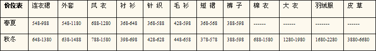 一、加盟优势 品牌优势: 1、共享知名女装品牌的巨大无形资产和现实价值。 2、遍布大江南北的网点布局及优秀的销售业绩、良好的业内口卑。 产品优势 1、强大的设计团队,高素质的设计队伍,欧美时尚流行信息网点,确保设计引领少淑时尚前沿。 2、独立的面料品种、色彩、花型设计,把时尚的设计和面料特色有机融于一体充分展示欧美田园风格的品牌特色。 3、工艺苛刻,版型考究、做工精细、面料上乘、品质优良。 价格优势 艾莱女装始终以"时尚不是奢侈,时尚就是生活"作为定价方针,能够让每一个爱美的女性体验艾莱女装时尚、奢华、高贵、优雅的品味。 服务专业及品牌统一管理优势 1、专业人才的投资分析全程协助,最大限度降低投资经营风险。 2、专业人才的开业和销售指导,成熟可靠的专卖管理经验,保证获得丰厚投资回报; 3、专业的物流系统,高效快捷的供应配送、保证产品终端流量的及时适量。 4、统一服务支持:统一形象,统一宣传,统一价格,统一管理,统一配送,统一服务。 5、不定期的市场巡视和系统培训不断提高合作商的销售水平,保证销售持续稳定发展。 大力度的合作支持 1、 免费提供店铺形象设计、陈列形象设计。 2、严格的市场区域划分,避免市场相互蚕食和无序竞争,使合作商的利益得到充分保障。 3、大额度装修支持。 4、灵活务实的政策,高额度的退换货率使合作商的风险降到最低点。 二、加盟要求: 1、当地繁华商业街、女人街、步行街女装品牌专卖集中地段,大型购物中心或商场。 2、营业面积:商场专柜45平方米以上(边厅或次边厅),专卖店50平方米以上。 3、店铺装修:统一按公司形象装修,公司免费提供装修设计,装修费用前期由加盟商承担。 4、加盟政策:全国统一的代理加盟折扣,统一的订货制度,统一的换货率。 |