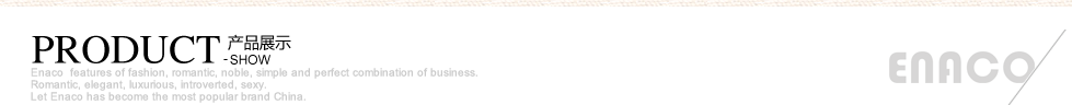 Enaco(爱妮格)特色是时尚,浪漫,高贵,简洁和商业的完美结合。 浪漫,优雅,奢华,内敛,性感,Enaco (爱妮格)致力于缔造都市女性时尚四季生活装,融合现代女性乐观自信独立的时代性格,Enaco (爱妮格)演绎出21世纪时尚女性的全新着装理念。性感让女性魅力自然流露,风情万种,令人无法抗拒;优雅,散发着神秘,高雅,浪漫,柔情的女人味道,Enaco (爱妮格)用时尚魅惑的元素传递出成熟女性的内在激情,成为女人享受生活的最表象的载体。 企业精神:诚信、创新、务实、团结、执着 经营理念:诚信服务,共赢发展 经营宗旨:以人为本,共创和谐 企业核心价值观:满足客户的最大需求,追求服务的最大价值,创建美丽,共赢财富。 企业愿景:打造国内著名的女装品牌。 品牌介绍 消费群体:25 - 40岁 都市时尚女性。 品牌风格:休闲、时尚、自信。 经营目标:让Enaco (爱妮格) 成为中国最受欢迎的女装品牌。 产品系列:春装、夏装、秋装、冬装。 价格定位:春夏装零售价99-699,秋冬装零售价199-1399。 |