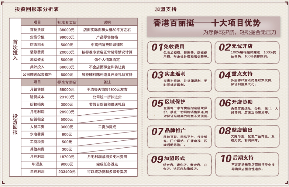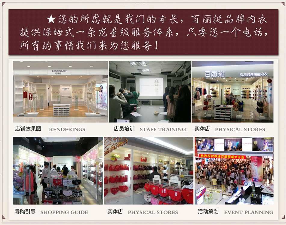 百丽挺 都市女性最喜爱的内衣品牌 百丽挺,源自香江,出自名门,是广州市多典服饰有限公司专为都市女性打造的时尚功能型内衣品牌,它的时尚潮流、舒适贴心、高贵优雅等被广大都市女性所喜爱和传颂。广州市多典服饰有限公司前身是内销外推的内衣贸易公司,随着时代的驱赶脚步而逐日攀进,如今已经发展成为国内最具影响力的专业品牌内衣公司,亦是支撑百丽挺品牌在内衣界遍地开花的强有力盘柱。 "百丽挺",顾名思义,百万佳丽中以傲人身姿而挺拔出众,这是在五千年灿烂中华文明的淬炼下,国内外文化交壤而成、碰击而出的时尚结晶。百丽挺内衣,是集香港、法国、英国研发设计师与医学教授等智慧结晶的结果,秉承展现女性魅力、傲人身姿、健康舒适的服务理念而塑造设计。 百丽挺的英文名称为"Beautiful Lady",美丽佳人,用内衣来衬托女性之美,既豪放狂野,又不失高贵雅致,给广大女性消费者带来自信、魅惑、傲姿而无力自拔! 在女性用品琳琅满目的21世纪,唯有诱于眼、用于效、植于心的产品才是女人的最爱。 百丽挺内衣,在不断的品牌淬炼下,终成国内市场一鳌头先驱,国内市场一片飘红,终端加盟店面遍布祖国大江南北,已然在神州大地掀起一阵女性内衣狂澜! 百丽挺内衣迷醉了男人的目光,招致了女人的嫉妒,知性魅力,优雅绽放,这是一个与美共舞的品牌;这是个功能内衣热潮的年代;百丽挺品牌内衣,自创立之初就肩负着引领大众时尚潮流,争做中高档内衣品牌的领跑者。一直致力于向广大女性朋友倡导一种健康美丽的生活,致力于给广大女性朋友带来更多健康、舒适、美丽和自信的感受。百丽挺内衣款式多样、讲究选料,设计大方得体,注重细节与体验;产品穿着健康、时尚、舒适和美丽,卓尔不凡,彰显女性的自信和魅力;百丽挺品牌内衣优雅却不张扬,简洁却不简单,每个细节的设计都散发出百丽挺品牌的精彩,以一种无处不在的惊喜让您体验生活的点滴乐趣,真正带给您的是无与伦比的贴心享受。 |