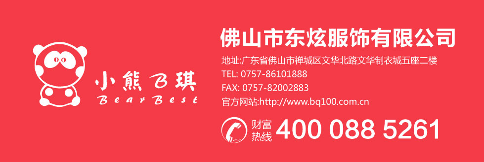 佛山市东炫服饰有限公司成立于1994年,其前身为佛山市大兴隆制衣厂,1999年开始创建童装品牌,其旗下拥有--"小熊B琪"(BEAR BEST)和"熊博士(BEAR DOCTOR)两大著名童装品牌。在中国童装品牌发展过程中,佛山市东炫服饰有限公司引进国际先进的经营管理理念与设计理念,在广东佛山童装产业群设立产品研发中心、运营中心、生产中心和物流配送基地。凭借佛山服装产业群中的优势资源迅速发展国内市场。
