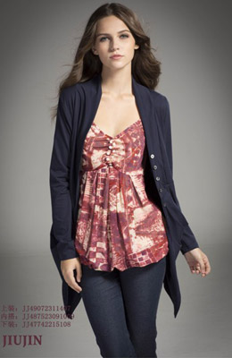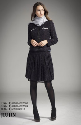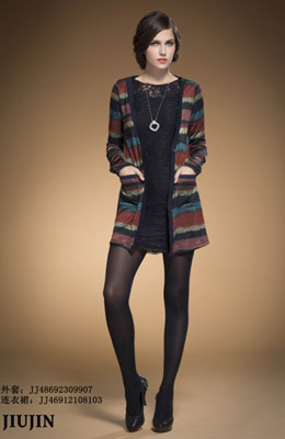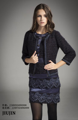 与每季的新款设计和创意交流。JIUJIN 服饰其特殊之处在于款式的多元化,风格的历久弥新。粉碎了时装与休闲装的隔阂,让时装可以休闲化,休闲又具有个性化。JIUJIN 是专为23-38岁时尚.自信的都市丽人所量身定做的。
